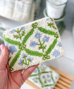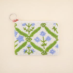 Blue Floral Beaded Coin Purse