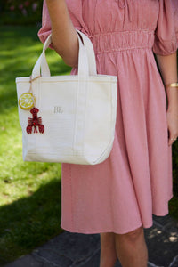 Show your personality with one of our exclusive, custom-designed bag charms. Each piece is meticulously hand-beaded on both sides, offering a playful pop of texture and color from every angle. Whether you’re dressing up a beaded bucket bag or adding charm to your go-to boat and tote, these accessories are a perfect expression of style with a touch of whimsy. A little coastal, a little kitsch—in the best way. This charm pairs a bold red lobster with a zesty lemon slice for a look that’s equal parts New England tradition and seaside fun. It’s the charm your boat and tote didn’t know it needed. Where will you take it this summer? Nantucket, Cape Cod, Newport, Maine? Handmade in India. Copyright 2025, Beth Ladd Collections.