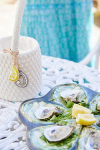 Show your personality with one of our exclusive, custom-designed bag charms. Each piece is meticulously hand-beaded on both sides, offering a playful pop of texture and color from every angle. Whether you’re dressing up a beaded bucket bag or adding charm to your go-to boat and tote, these accessories are a perfect expression of style with a touch of whimsy. A little luxe, a little laid-back—this charm features a shimmery oyster on one side and a zesty lemon slice on the other. The ultimate pairing for seaside days, summer nights, and bags that deserve a little flavor. Where will you take your bag charm this summer? Charleston, New England, Maine? Handmade in India. Copyright 2025, Beth Ladd Collections.